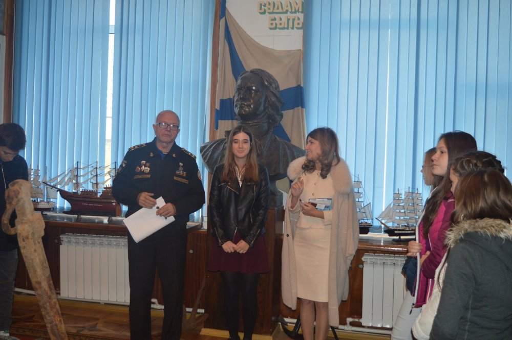 С учащимися школы была проведена экскурсия по музею военно-морского флота ММУСТЦ, были продемонстрированы: уникальная учебно-материальная база центра, современные тренажеры для подготовки морских и речных специалистов, водолазный полигон, полигон по борьбе за живучесть надводного корабля. Гости центра попробовали полетать на электронном симуляторе для авиамоделистов и судоводителей.