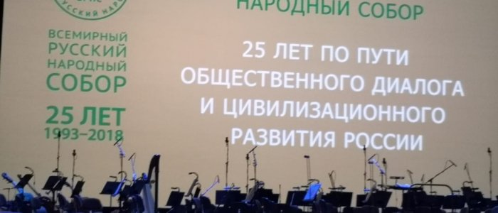 8 нояб.В начале ноября 2018 года в Государственном Кремлёвском Дворце под руководством Президента России Владимира Путина и Святейшего Патриарха Московского и всея Руси Кирилла состоялось пленарное заседание XXII Всемирного Русского Народного Собора (ВРНС) на тему «25 лет по пути общественного диалога и цивилизационного развития России.