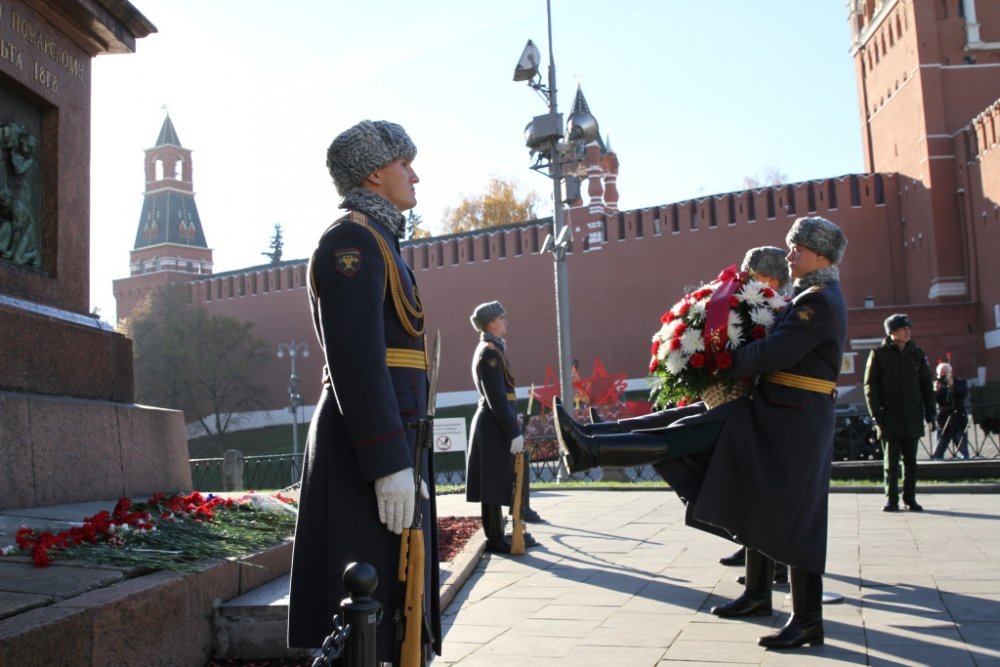 Возложение цветов к памятнику К. Минину и Д. Пожарскому на Красной площади в День народного единства