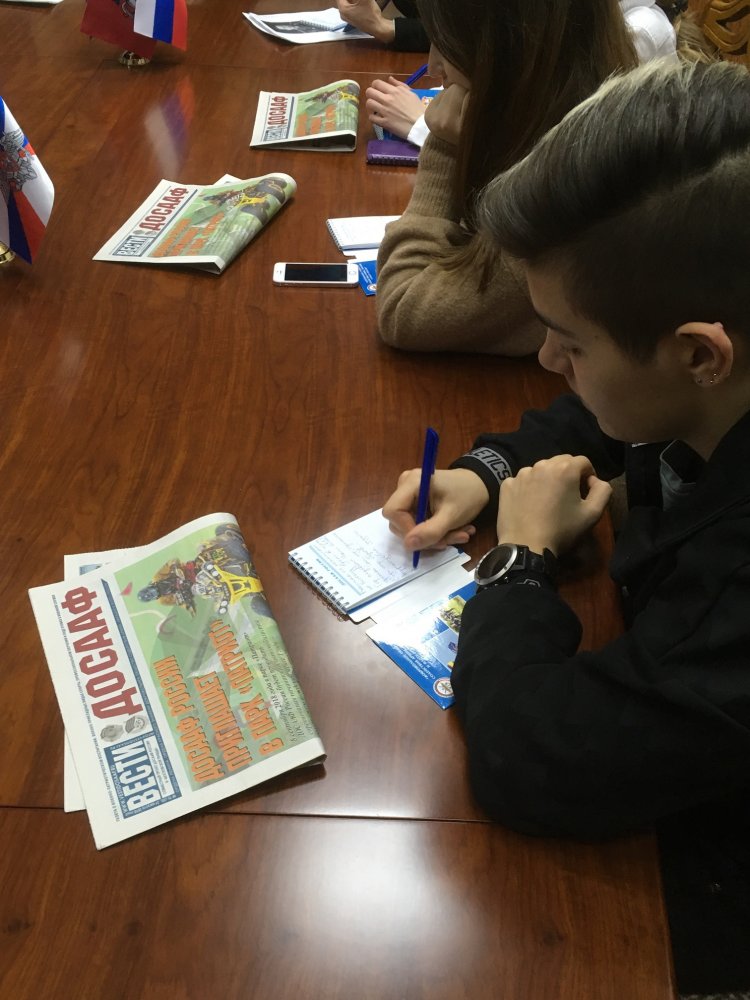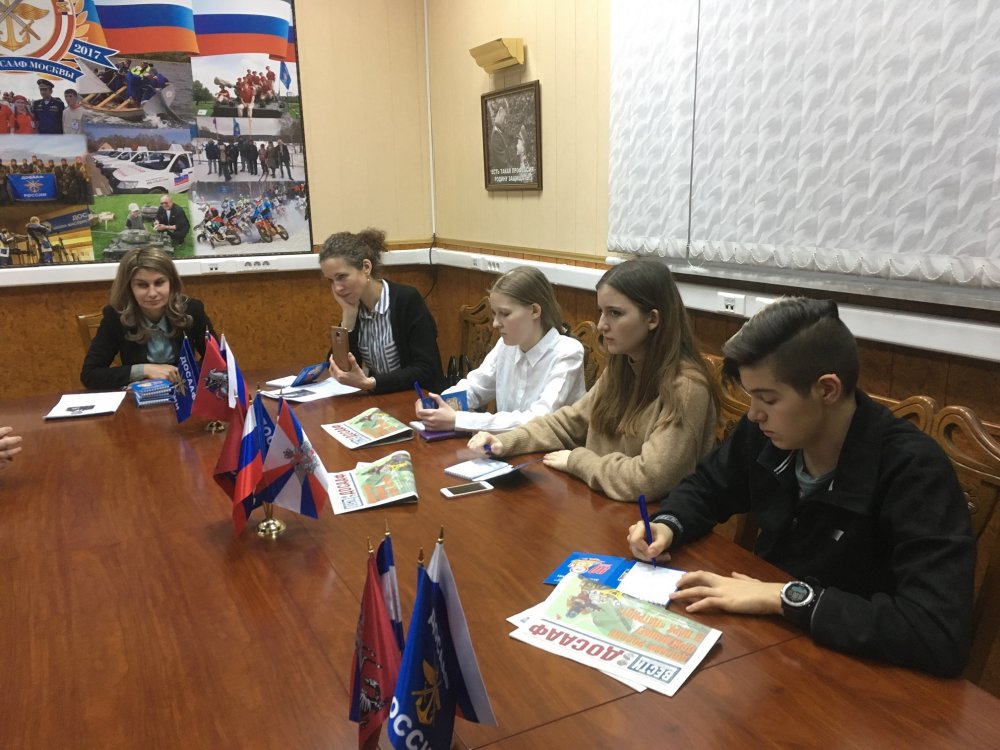 Председатель ДОСААФ Москвы Ниниченко В.И. отметил, что вклад воинов-интернационалистов в мировую стабильность неоценим, и как важно то, что именно молодое поколение проявляет интерес и впоследствии будет рассказывать своим сверстникам о людях, чьи судьбы уже сегодня стали легендами. Во встрече принимали участие Акрамов Н.М., Березин Е.В., Соколов А.К., Мосолов К.В., Тарасов В.В., которые отвечали на вопросы юных журналистов, рассказывая о том, как подготовка в ДОСААФ оказала влияние на их службу и жизненный путь.