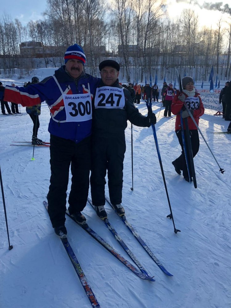 Прекрасный зимний солнечный день, искрящийся снег, накатанная лыжня и отличное настроение! С этим замечательным настроением на старт первыми вышли руководители ДОСААФ России во главе с Председателем Колмаковым А.П.