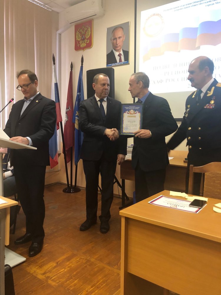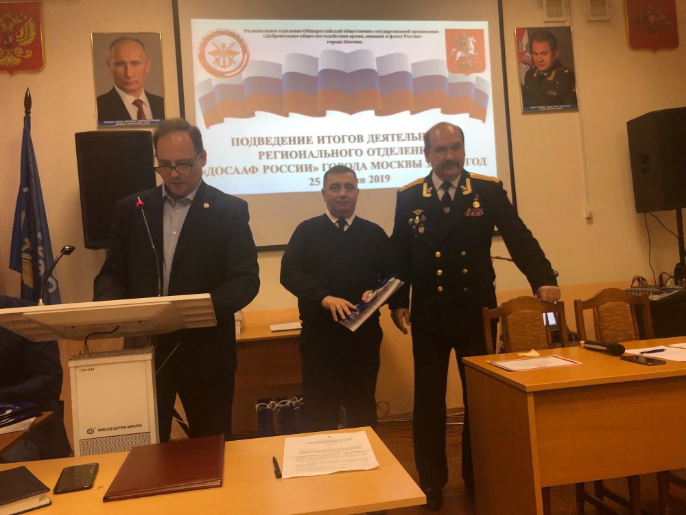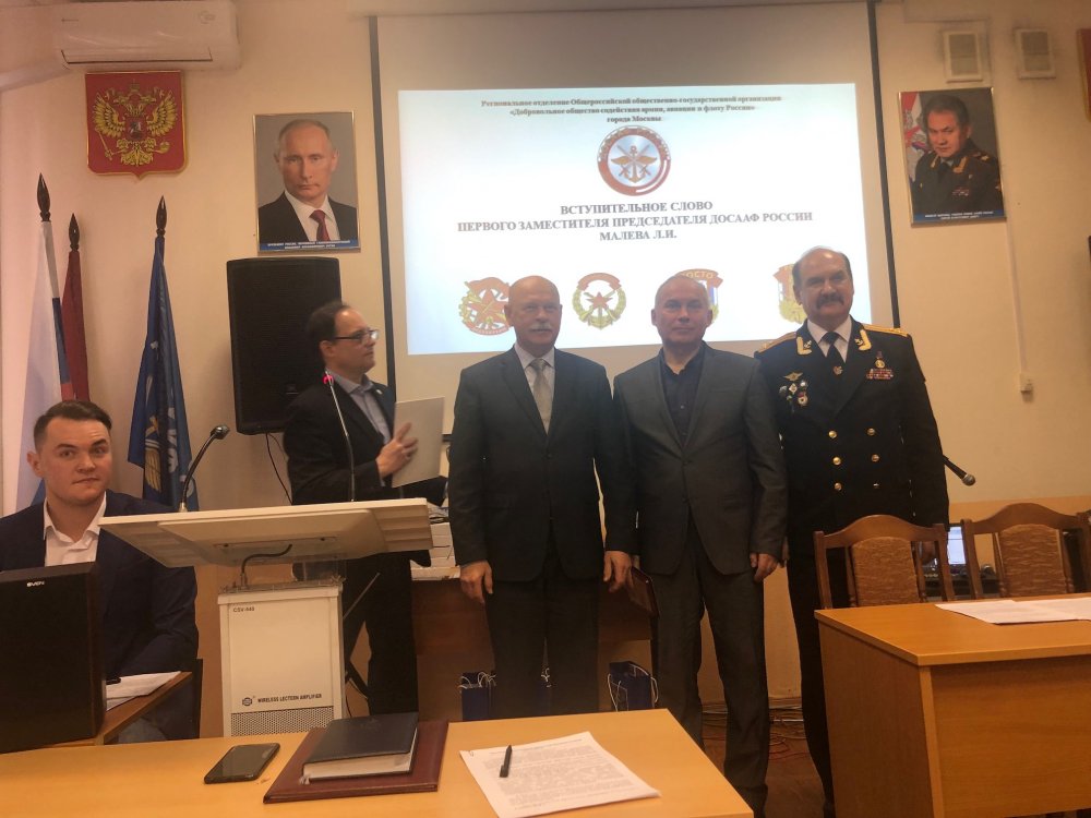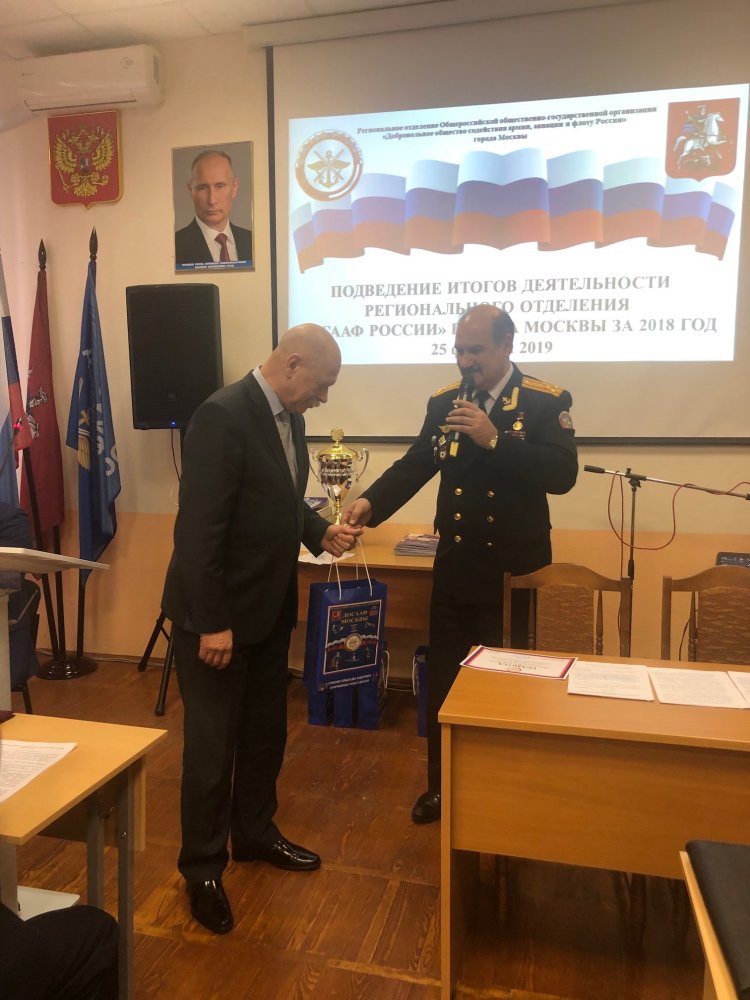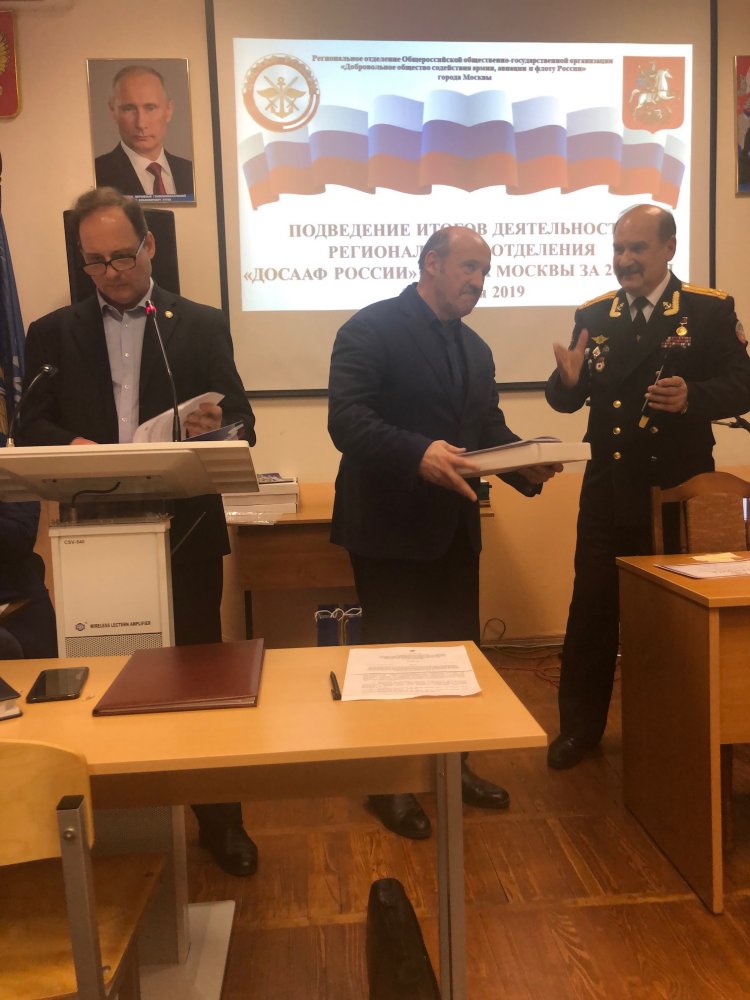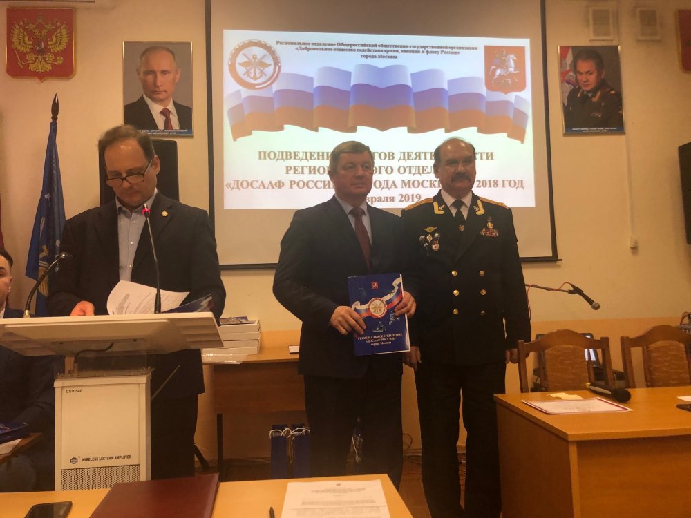 В своем выступлении первый заместитель Председателя ДОСААФ России Малев Л.И. поздравил Региональное отделение ДОСААФ Москвы с почетным Первым местом среди Региональных отделений ДОСААФ России по итогам работы за 2018 год и назвал сотрудников ДОСААФ Москвы лучшими из лучших.