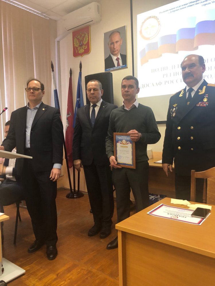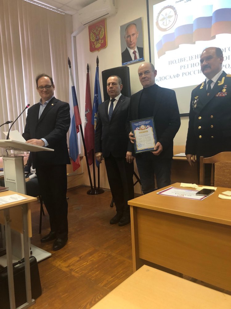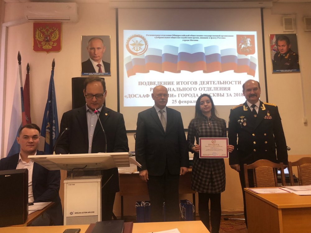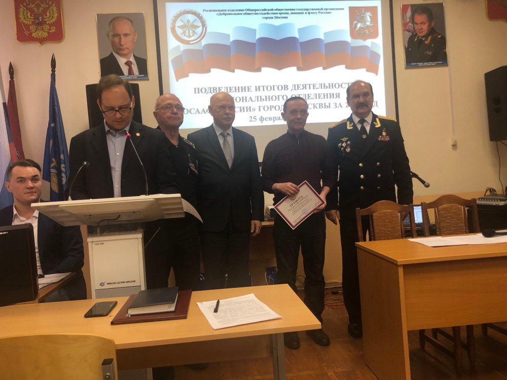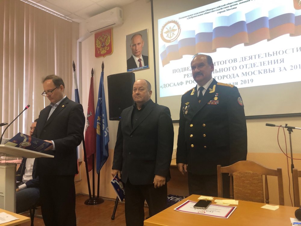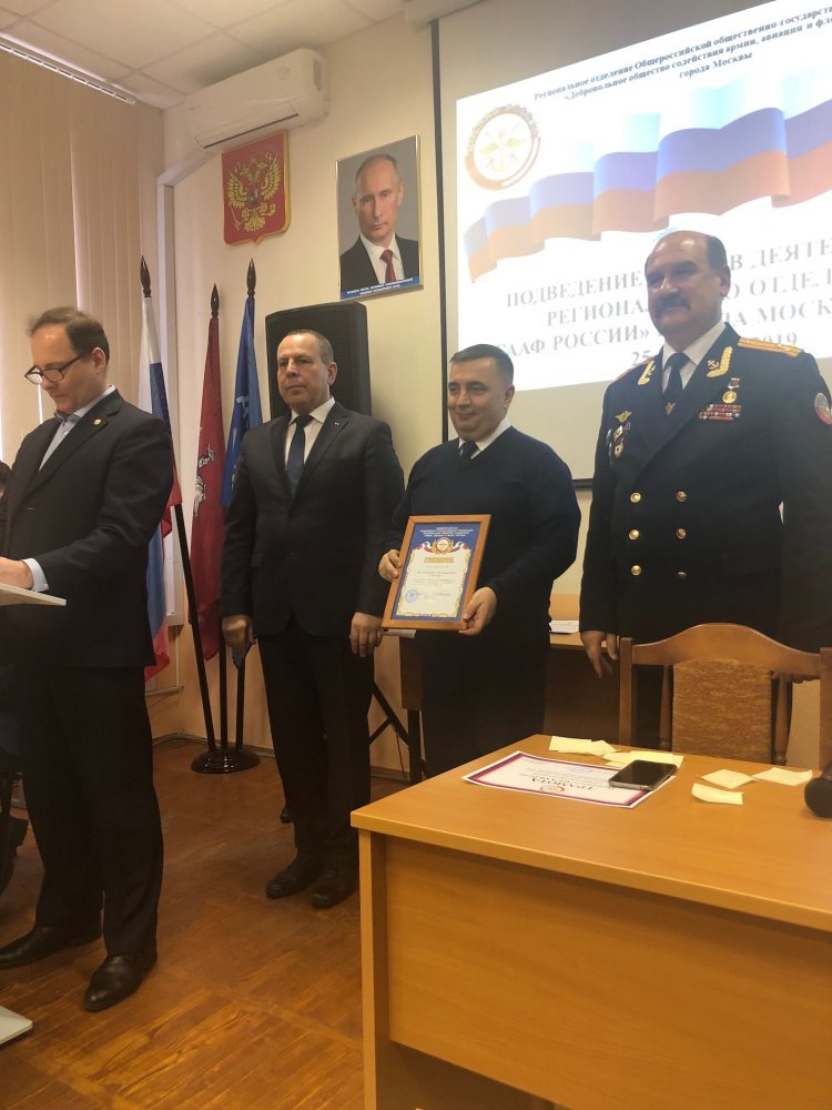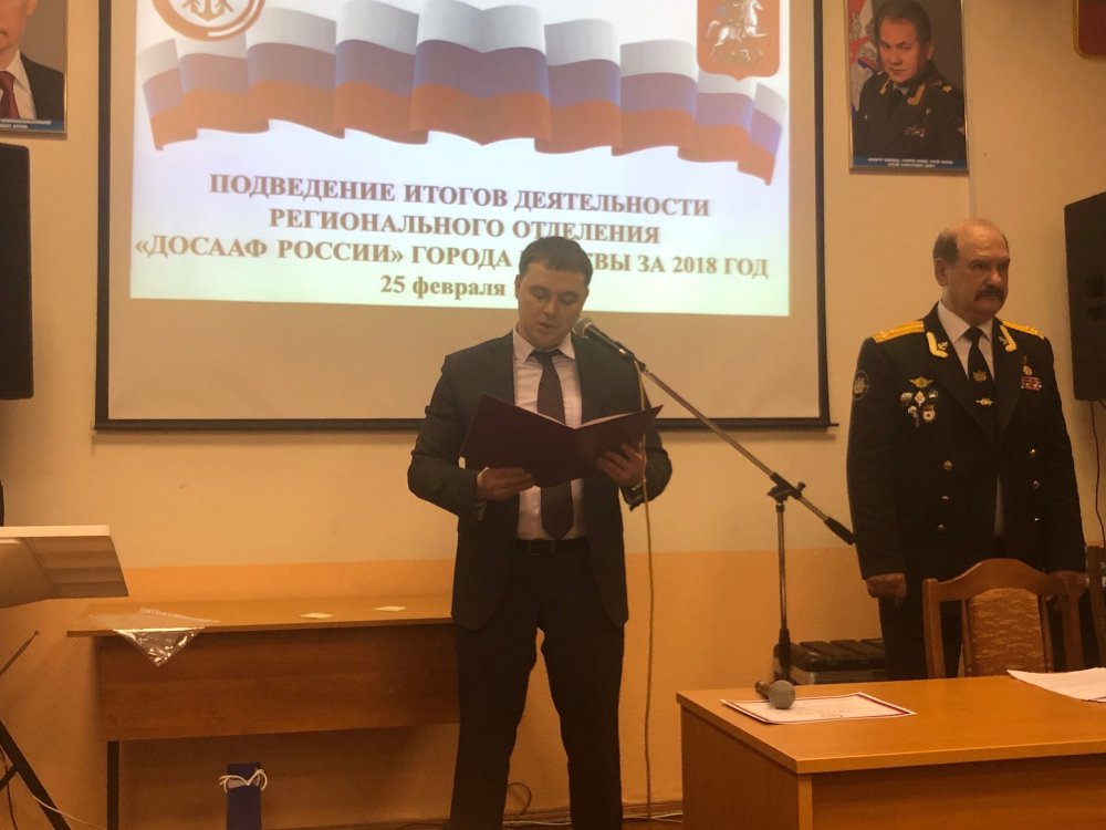 Приказами Председателя ДОСААФ России А.П. Колмакова, руководителя Департамента региональной безопасности и противодействия коррупции города Москвы В.В. Регнацкого, Председателя Регионального отделения «ДОСААФ России» города Москвы В.И. Ниниченко были поощрены работники подразделений ДОСААФ Москвы, наиболее отличившиеся при выполнении государственных задач, стоявших перед оборонной организацией города Москвы в 2018 году.