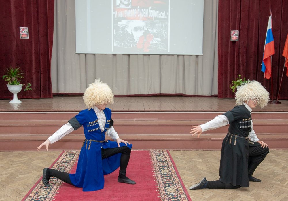 В заключение Вечера памяти, учащиеся продемонстрировали несколько концертных номеров - хор кадетов исполнил «Марш боевого братства», продемонстрировали кадетский вальс, а ребята из Дагестана станцевали лезгинку.