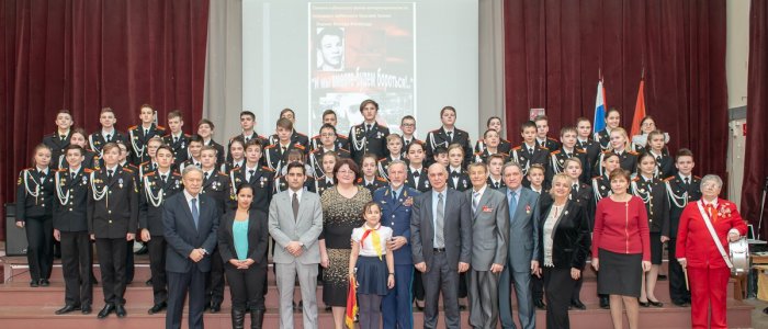 В мероприятии приняли участие кадеты - учащиеся школы 7 и 8 классов, также приглашенные гости: Консул посольства Республики Куба Эдуардо Эскандель и его супруга, 3-й секретарь посольства Ана Лоурдес Гонсалес Вильчес, Авдеев Виктор Иванович, Председатель МОО «Ветеранов воинов-интернационалистов «кубинцев», Волок Борис Поликарпович, вице-президент МОО «Общество дружбы с Кубой», Куликов Владимир Леонидович, Чрезвычайный и Полномочный посол РФ в Республики Боливия, Макарук Михаил Маркович, генерал-майор авиации, первый вице-президент МОО «Общество дружбы с Кубой», Мануйлов Николай Егорович, вице-президент МОО «Общество дружбы с Кубой», председатель первичного отделения ДОСААФ России по району Ново-Переделкино, Малиновская Муза Наумовна, дочь легендарного разведчика Наума Эйтингона, Финогенова Ольга Алексеевна, руководитель музыкального пионерского отряда «Кибальчиш», Ефимова Елена Алексеевна, старший методист «Музея истории детского движения» Московского дворца пионеров.