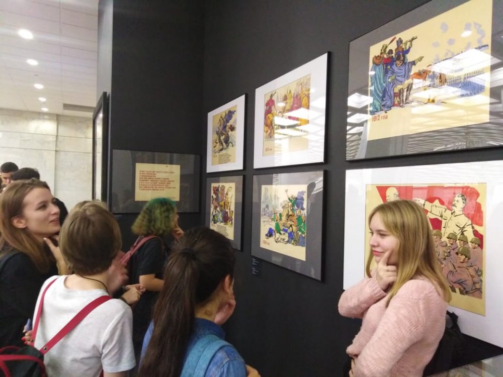 В музее была организована научно-практическая конференция «Окна РОСТА». Курсанты и студенты познакомились с выставкой сатиры, историей создания и краткой биографией авторов политической сатиры.