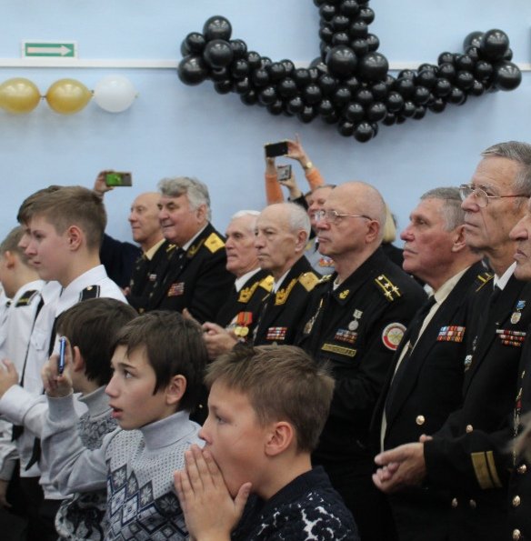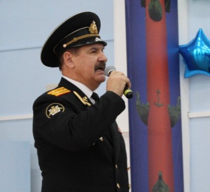 Председатель ДОСААФ города Москвы Ниниченко Вячеслав Иванович со сцены поздравил собравшихся с праздником, рассказал о важной роли ДОСААФ города Москвы в обучении призывников морским дисциплинам.