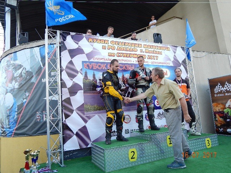 18 июля16 июля 2017 года Федерация мотоциклетного спорта г. Москвы и комиссия по «СУПЕРМОТО» МФР, совместно с РО ДОСААФ России по г. Москве на картодроме «ЛИДЕР» под городом Подольск провела соревнование по мото дисциплине «Супермото».