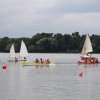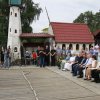 Команда военно-исторической реконструкции клуба продемонстрировала «морской бой» на трех шлюпках с установленными на них специальными пушками, стреляющие теннисными мячиками.